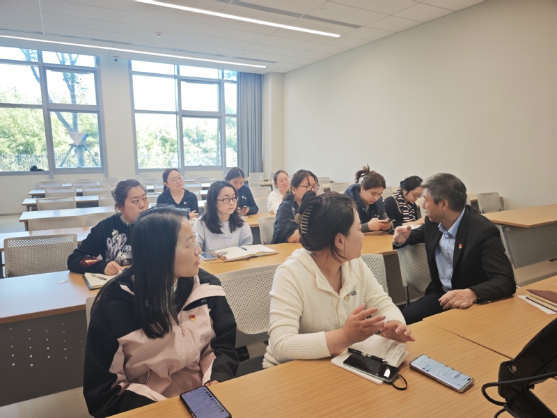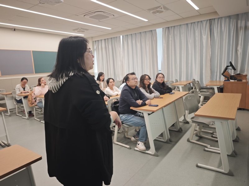 本次专题学习会采用“分校区、专人主讲” 的模式,确保学习覆盖更全面、解读更深入。其中,虹口校区专场由教职工党支部书记冷涛担任主讲人。冷涛以 “把握全会核心要义,锚定‘十五五’发展坐标” 为主题,结合商学院学科特色与人才培养目标,从全会召开的时代背景、提出的关键任务、对高等教育与商科领域的具体要求等方面展开系统讲解,通过案例分析、数据解读等方式,将宏观政策与师生日常教学、科研、学习实践相结合,让抽象的精神要义变得具象可感。