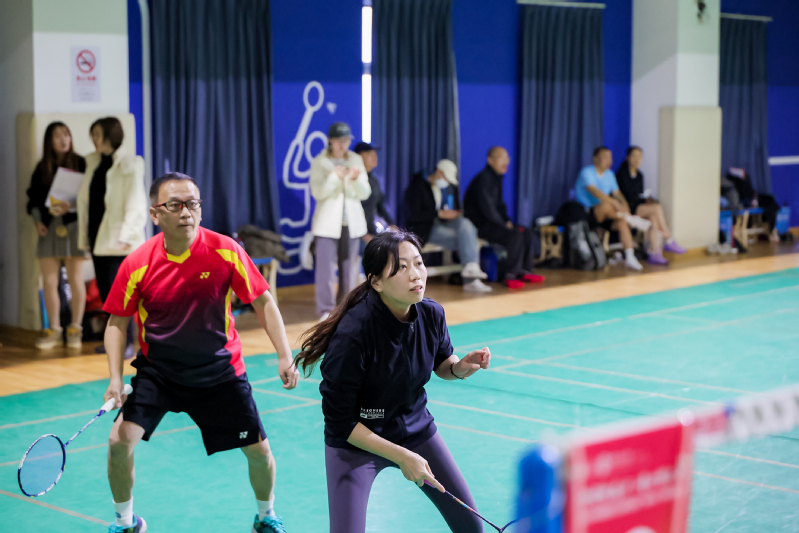 在双打赛场上,赵书记同郑书记搭档出战。面对实力强劲的对手,他们沉着冷静,默契配合。网前细腻的放小球与后场有力的扣杀相结合,展现了良好的技术素养和战术执行力。每一分都奋力争取,每一次防守都全力以赴,充分诠释了“拼搏进取、永不放弃”的体育精神,其精彩的对抗也赢得了现场观众的阵阵掌声。