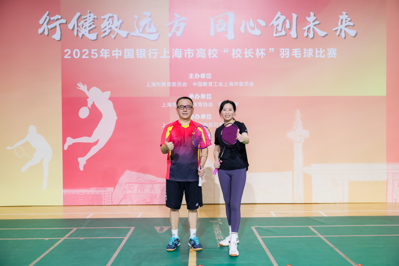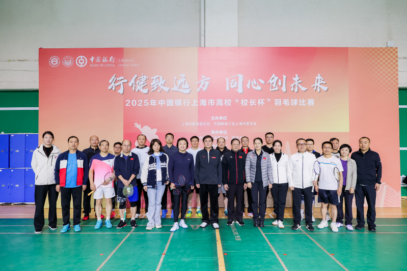 为深入贯彻落实全民健身国家战略,推动高校体育文化建设,展现领导干部积极向上的精神风貌,2025年12月6日,2025年中国银行上海市高校“校长杯”羽毛球比赛在同济大学新体育馆火热开赛。我校工会主席王磊担任领队,校党委书记赵荣善与副书记郑虹一同参加了双打项目的比赛。