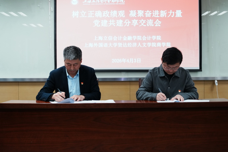 为深入推进新时代高校党建高质量发展,落实公办与民办高校党建结对共建部署要求,以党建引领育人事业提质增效,2026年4月3日,上海外国语大学贤达经济人文学院商学院赴上海立信会计金融学院会计学院开展党建共建交流活动。上外贤达学院商学院党总支书记赵立辉、党总支副书记朱缨、院长助理兼院办主任赵芳及党员代表,上海立信会计金融学院会计学院党委书记谢何融及各师生党支部书记共同参与活动。