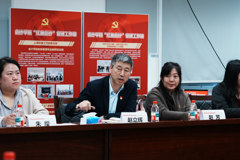 上海市党建样板支部、立信财务管理党支部书记王瑞以“一条主线、五个融合”为核心,分享了支部党建与专业建设、课程思政、师生发展等深度融合经验,为基层支部标准化建设提供示范。双方围绕党员发展、辅导员队伍、社区运行、就业攻坚、专业协同等议题深入研讨,精准对接、共解难题。